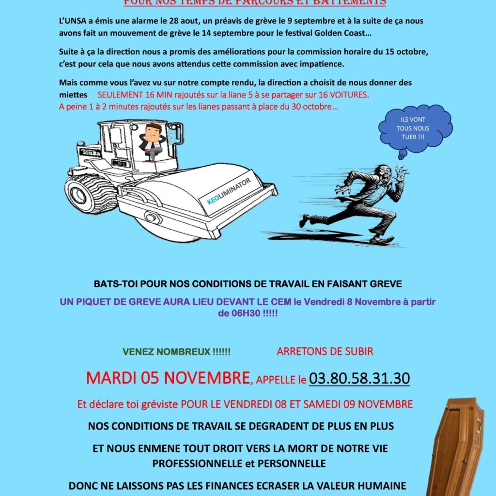 Suite à notre dernier mouvement de grève du 14 septembre la direction s’était engagé à apporter des améliorations à la commission horaire du 15 octobre dernier….